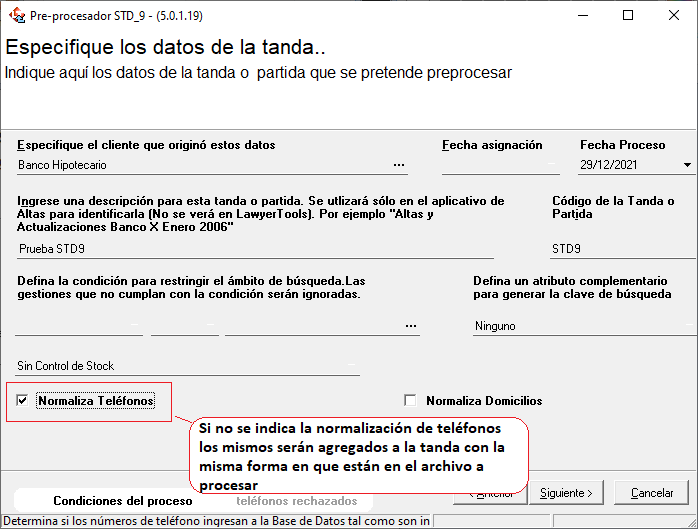 Ese proceso de “Normalización de teléfonos” se opera sólo si se indica en la configuración del proceso.